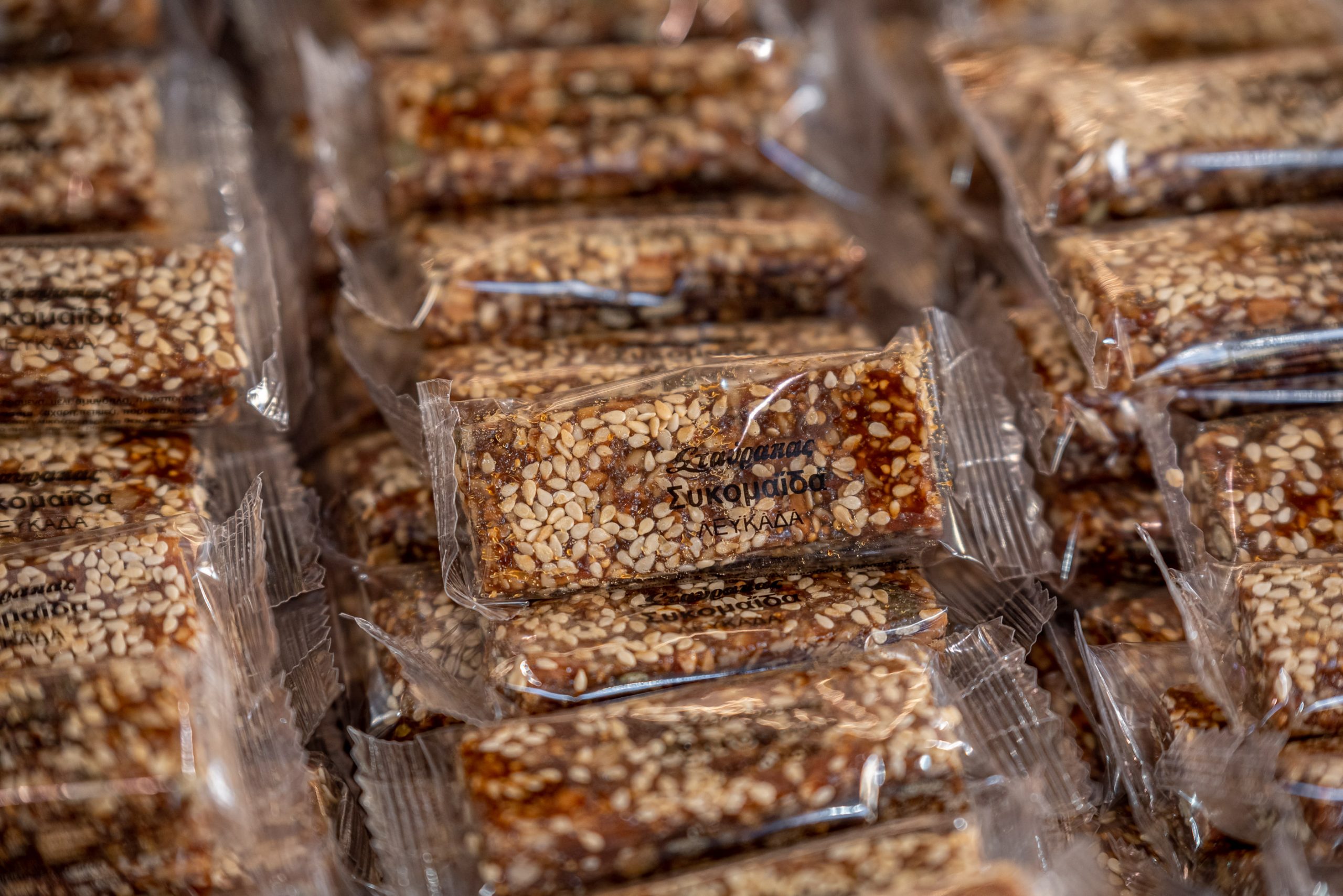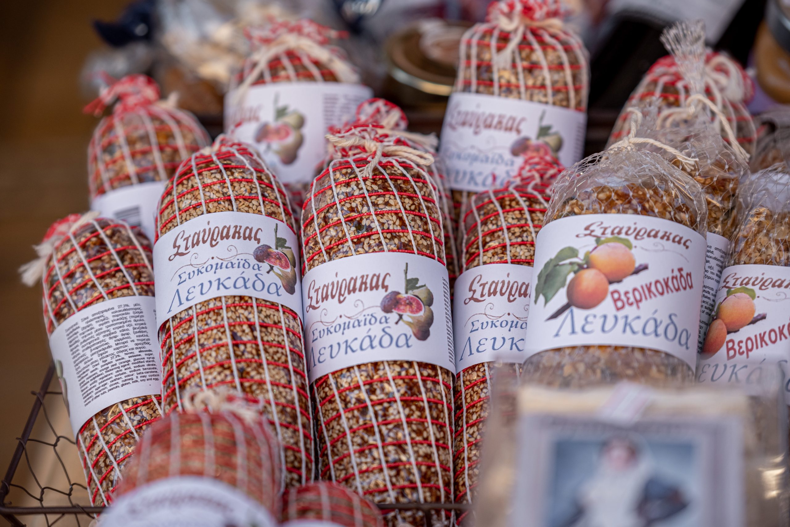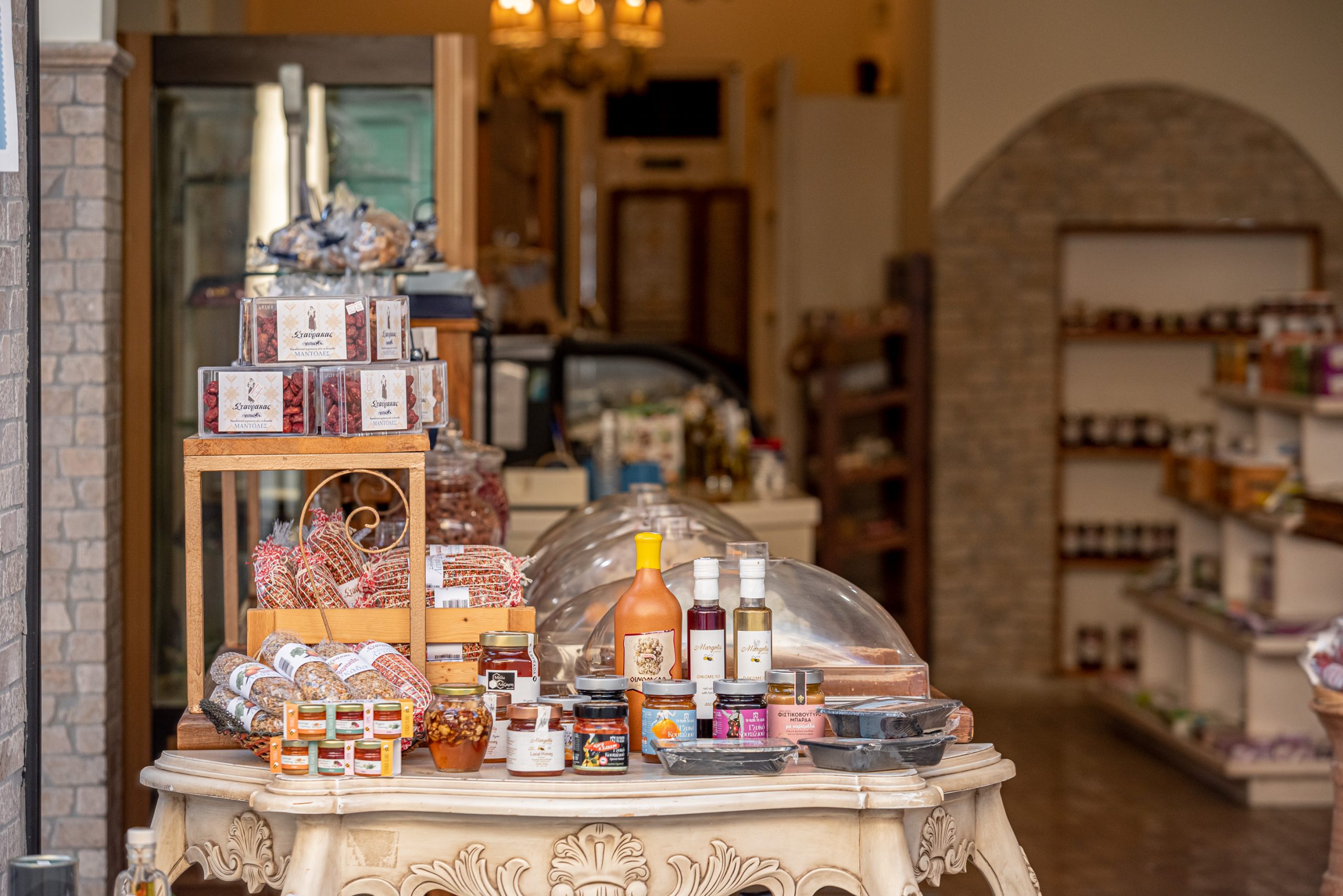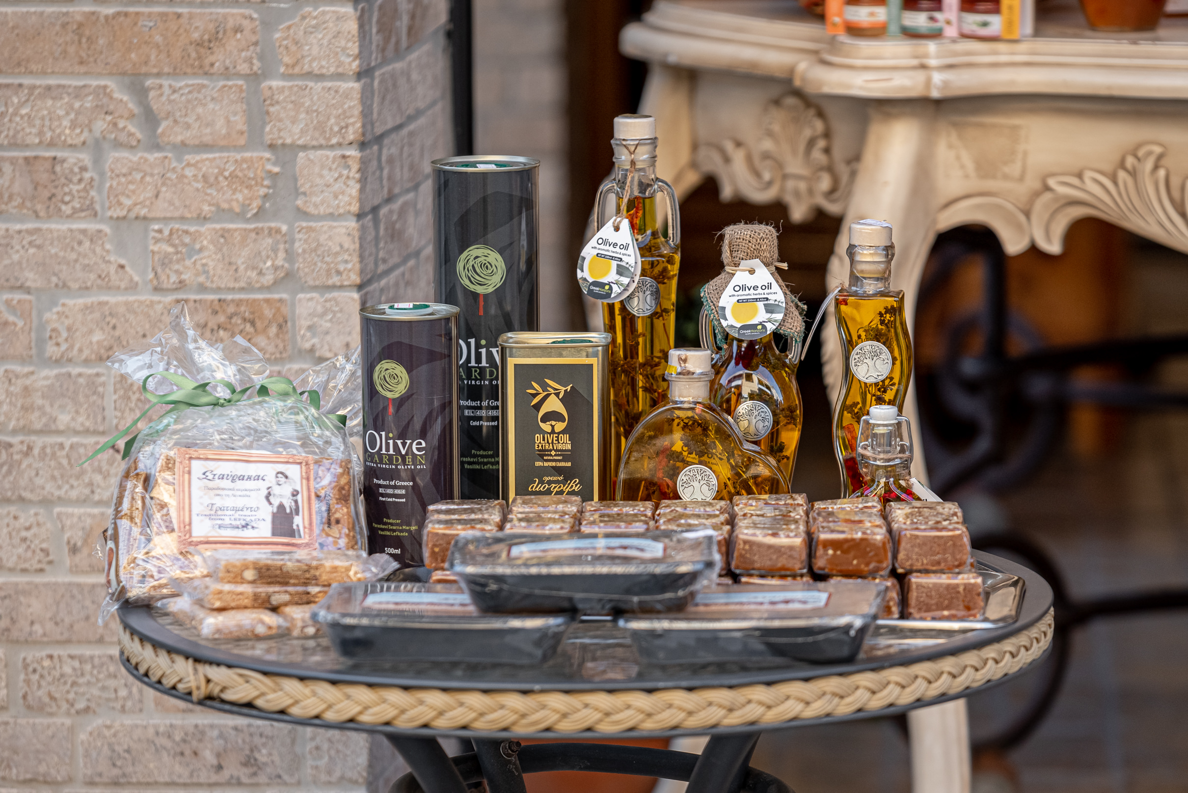 Some of the treats you will find in the store are: the traditional dessert of Lefkada, ladopita. In the old days it was made at weddings, baptisms and generally at any event that happened in the family. As well as pastel, nougat, figs, apricots, macaroons, soumada, nougat, oil cookies, florentina etc.