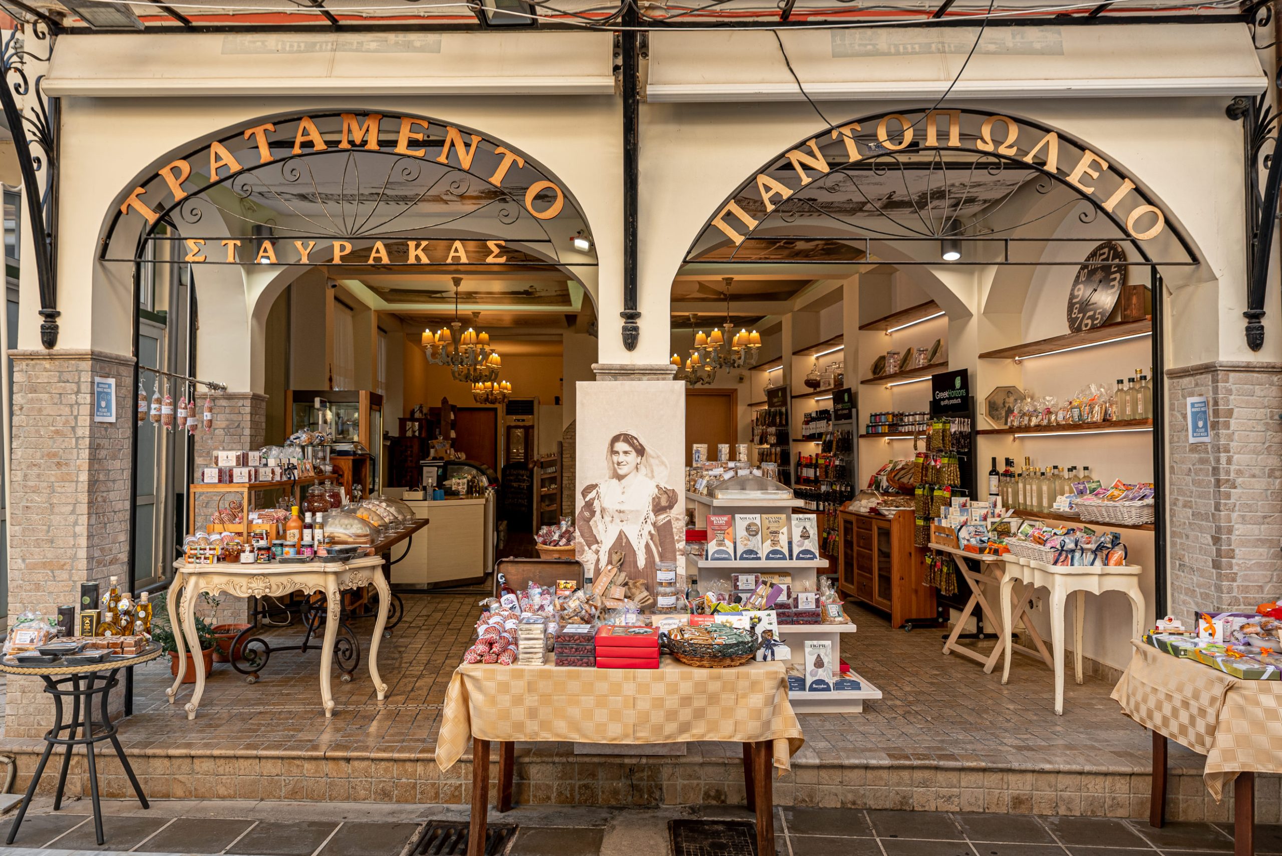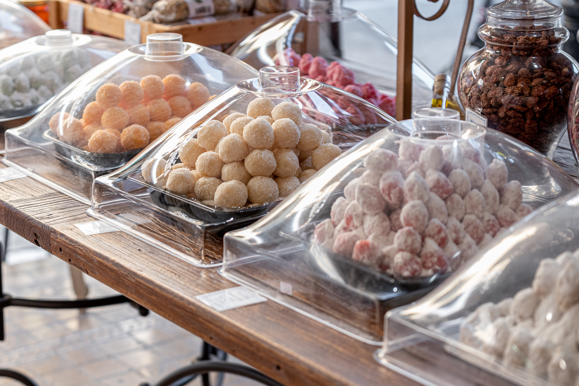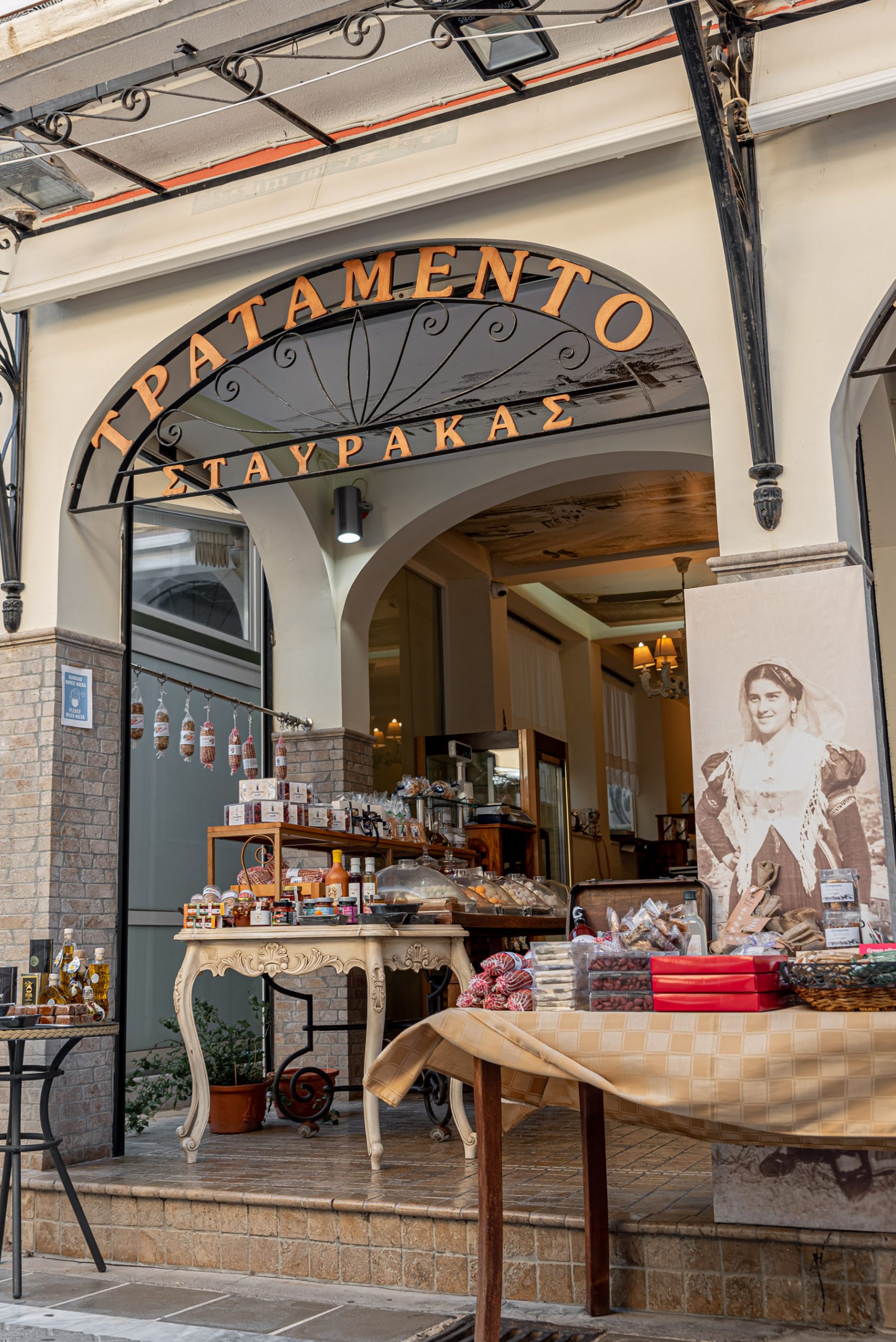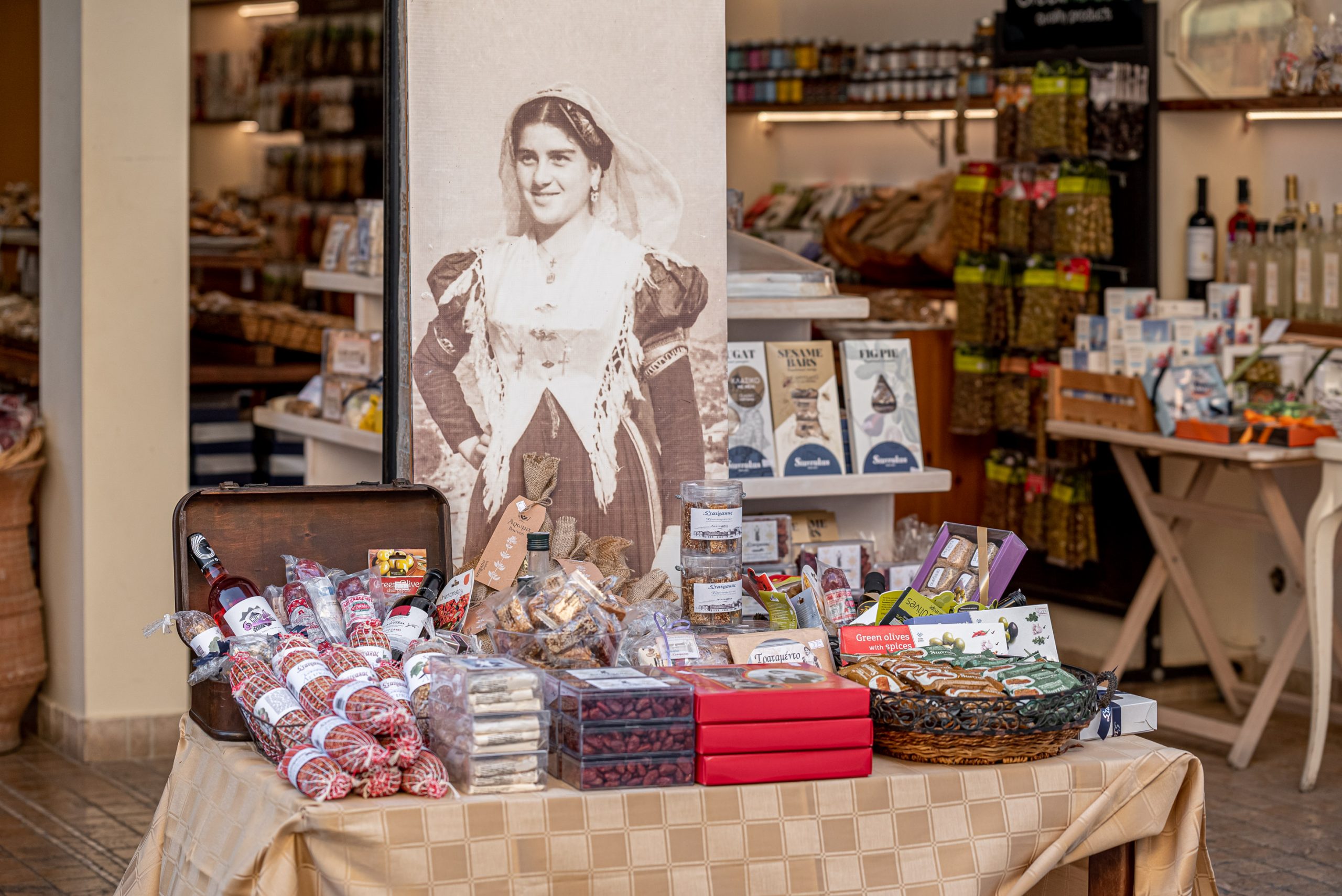 Some of the treats you will find in the store are: the traditional dessert of Lefkada, ladopita. In the old days it was made at weddings, baptisms and generally at any event that happened in the family. As well as pastel, nougat, figs, apricots, macaroons, soumada, nougat, oil cookies, florentina etc.